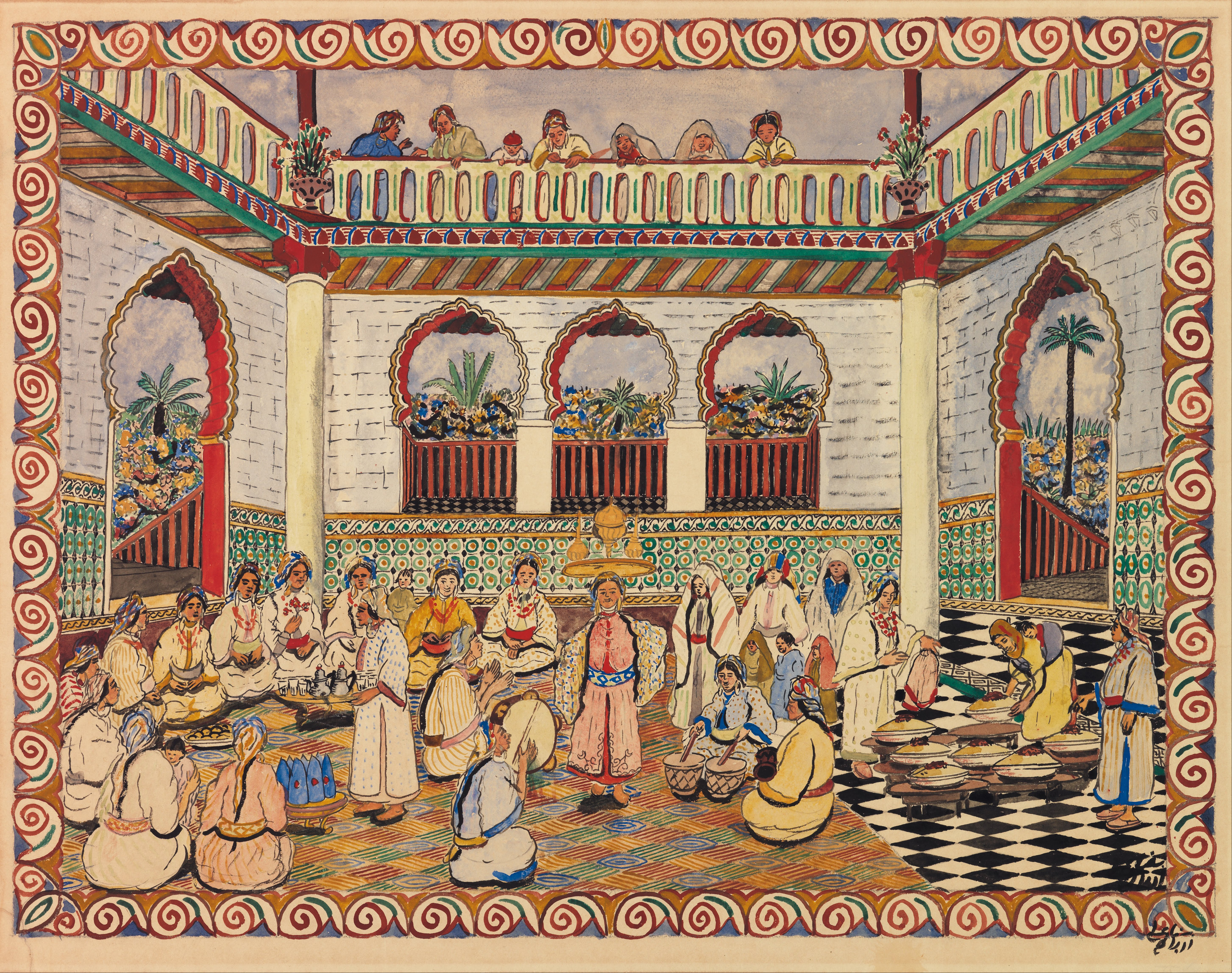 Rbati's festive scene feels spontaneous, yet deeply observant. Colour dances where storytelling and memory blur. His naive brush turns daily joy into cultural preservation, a celebration painted before the world could forget.